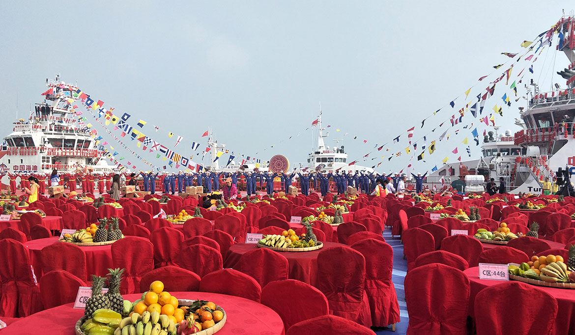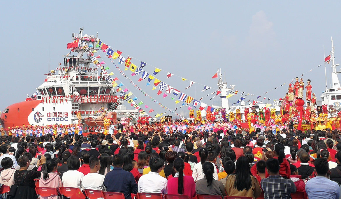 大紅燈籠高高掛,東西南北賀新春主題造型……會(huì)場年味十足!此次會(huì)場的最大亮點(diǎn)就是舞臺(tái)搭建,陸地與輪船相結(jié)合,大海為背景,完全體現(xiàn)了南國之風(fēng)的特點(diǎn)。