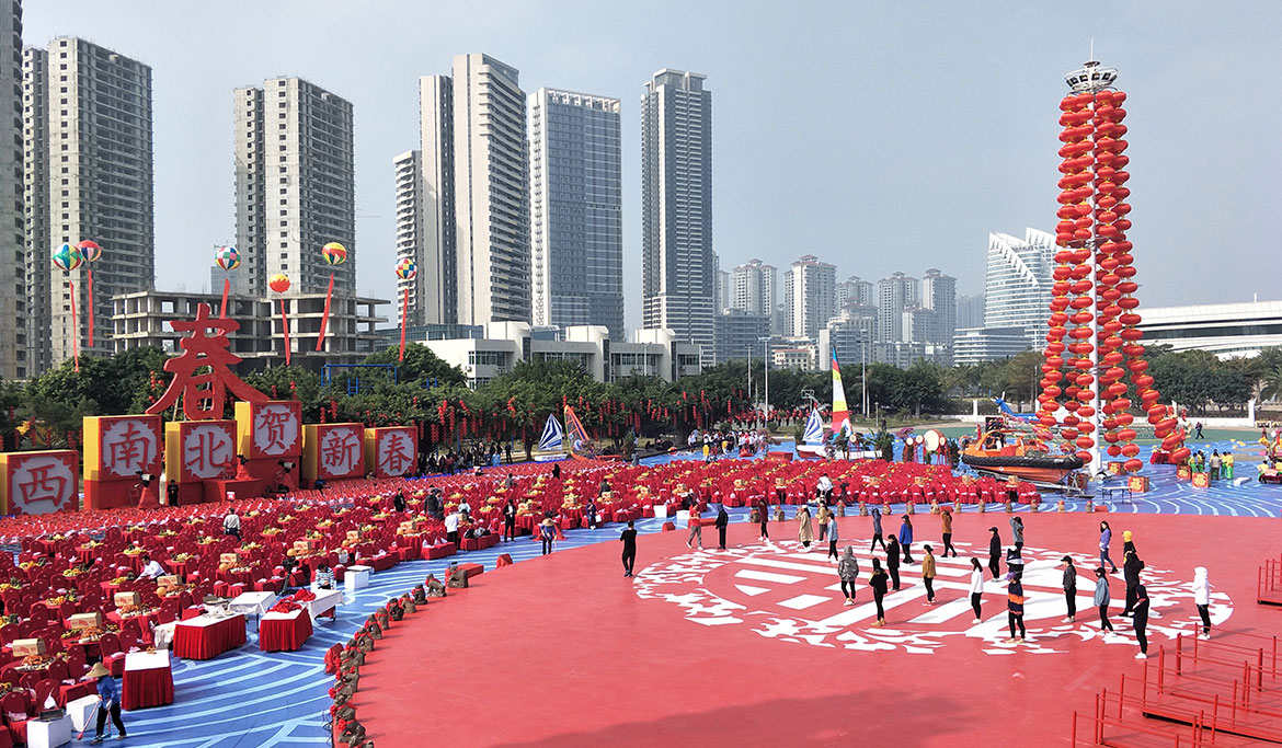 這是近年來在湛江市舉辦的級(jí)別最高、規(guī)模最大、影響最深遠(yuǎn)的一次文化活動(dòng)。作為2019央視《東西南北賀新春》特別節(jié)目全國四個(gè)分會(huì)場之一,錄制現(xiàn)場由我司策劃、設(shè)計(jì)、執(zhí)行。從場地規(guī)劃、主題性設(shè)計(jì)、舞臺(tái)搭建到會(huì)場氣氛營造等,都體現(xiàn)了我們眾利團(tuán)隊(duì)的專業(yè)。